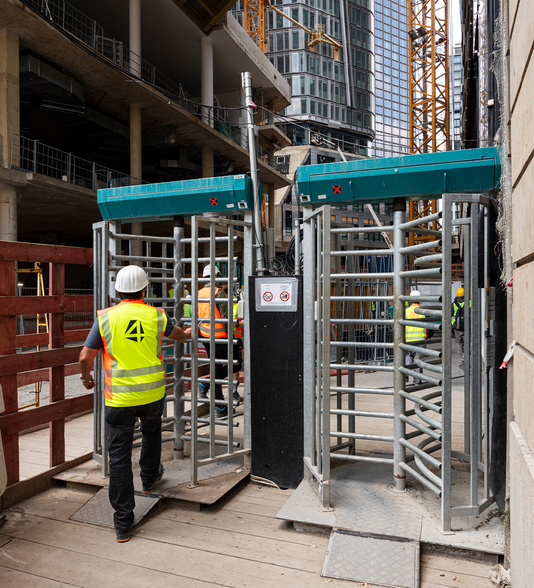 Die zentrale Aufgabe der Zutrittskontrolle ist es, auf der Baustelle für Legalität zu sorgen und aus ihr ein abgeschlossenes Betriebsgelände zu machen. Zugang erhält nur, wer über das entsprechende Unternehmen und die persönlichen Arbeitspapiere legitimiert ist.