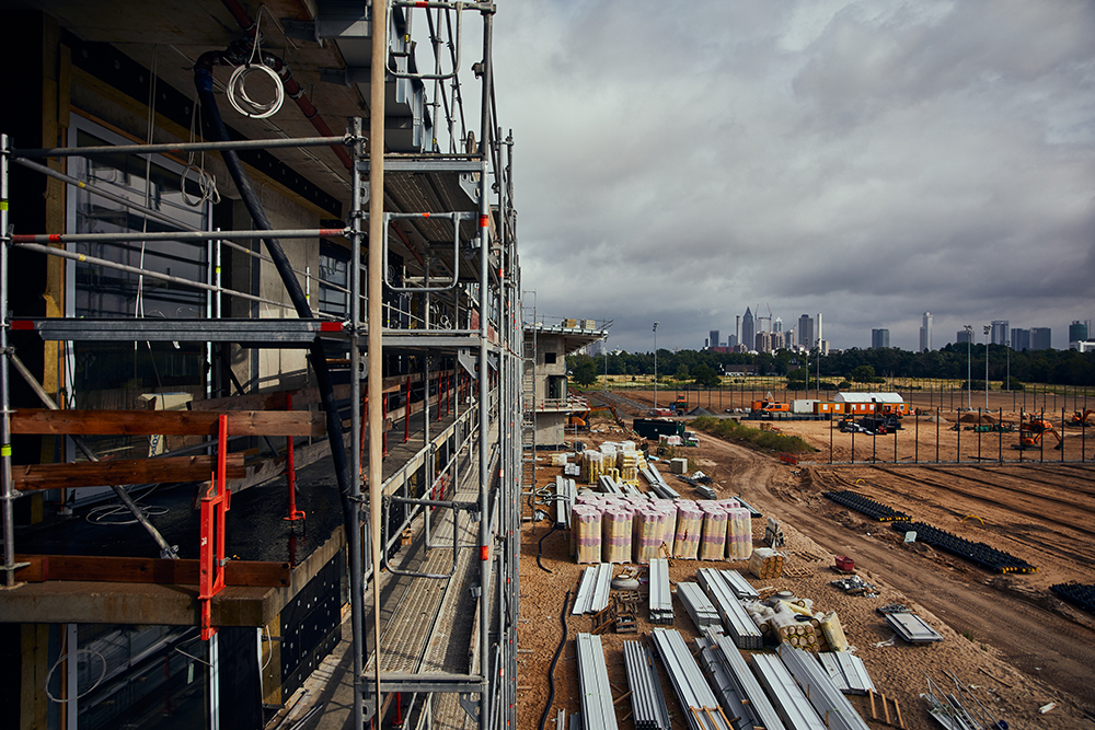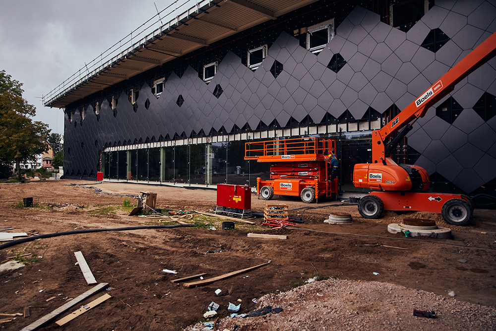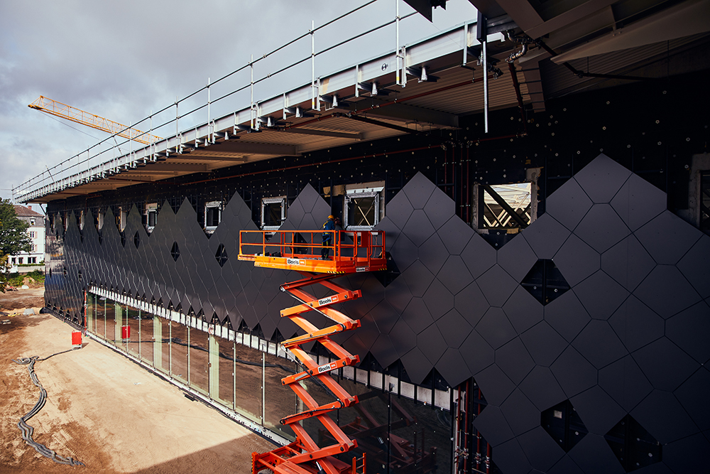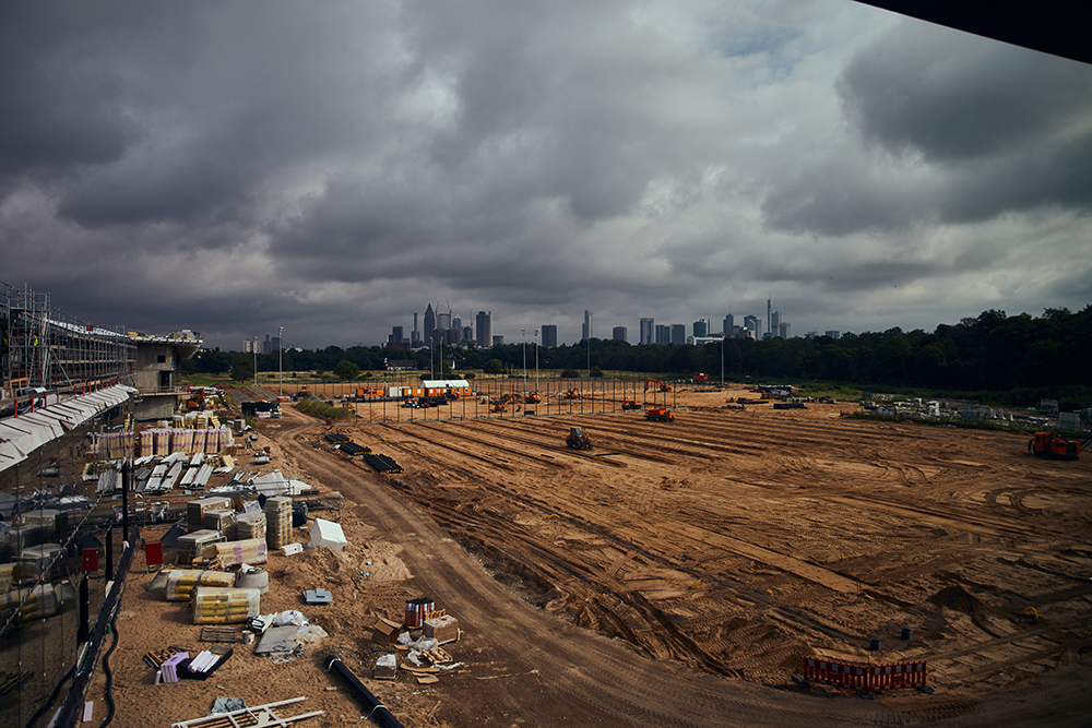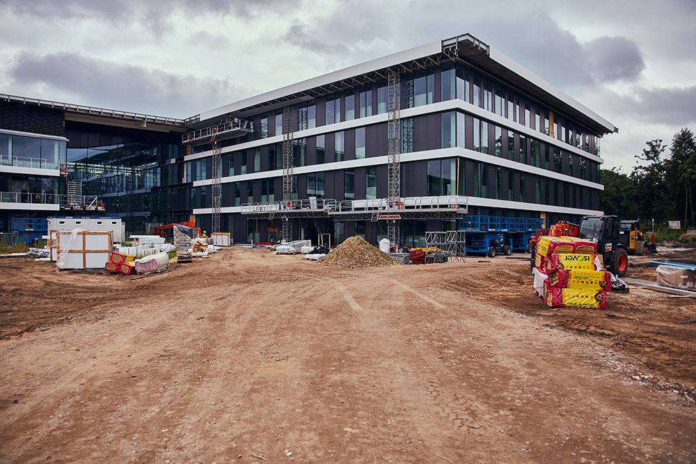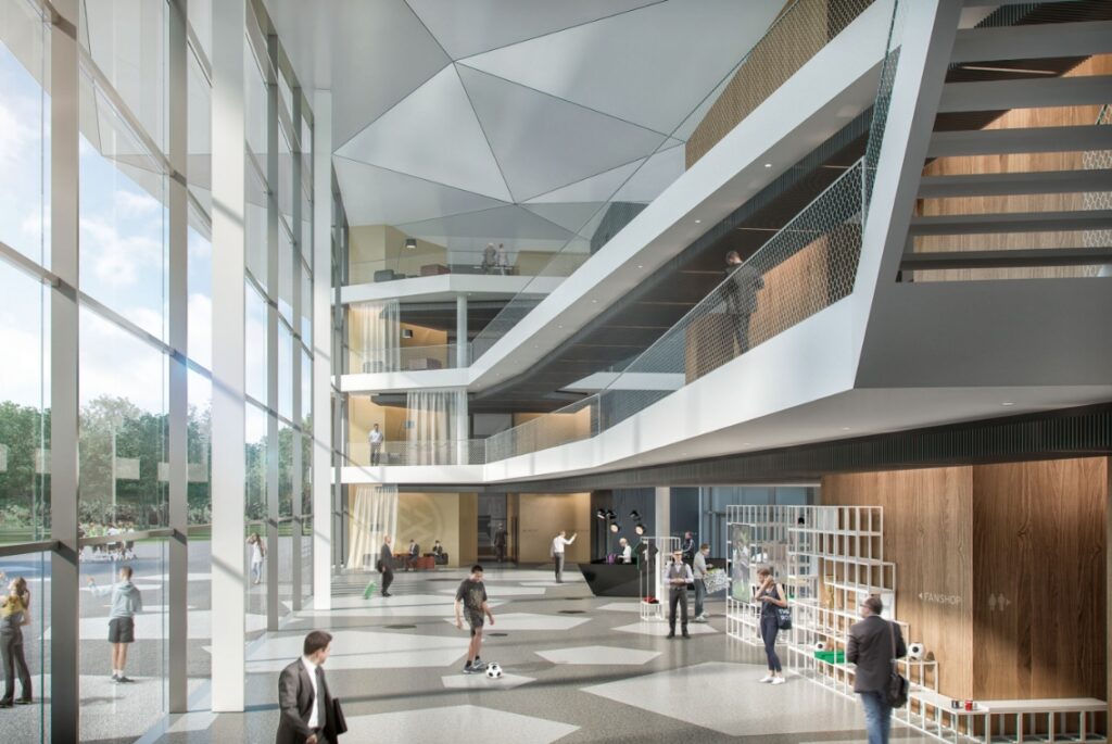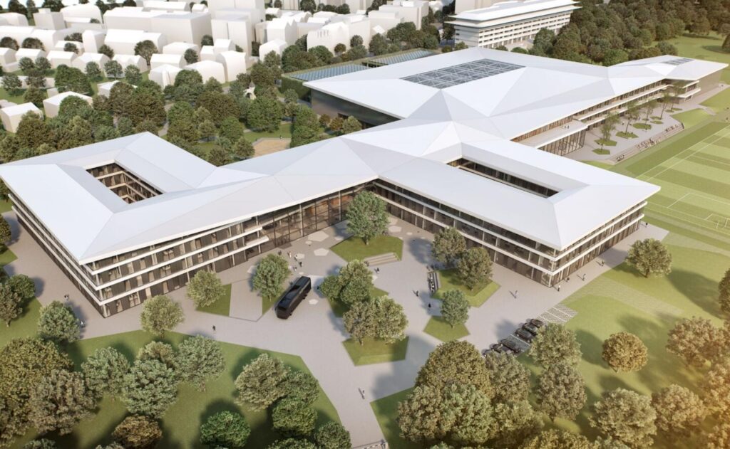 Der neue Campus des Deutschen Fußballbundes (DFB) liegt auf dem Gelände der ehemaligen Galopprennbahn in Frankfurt Niederrad und vereint Verwaltung und sportliche Einrichtungen unter einem Dach.
