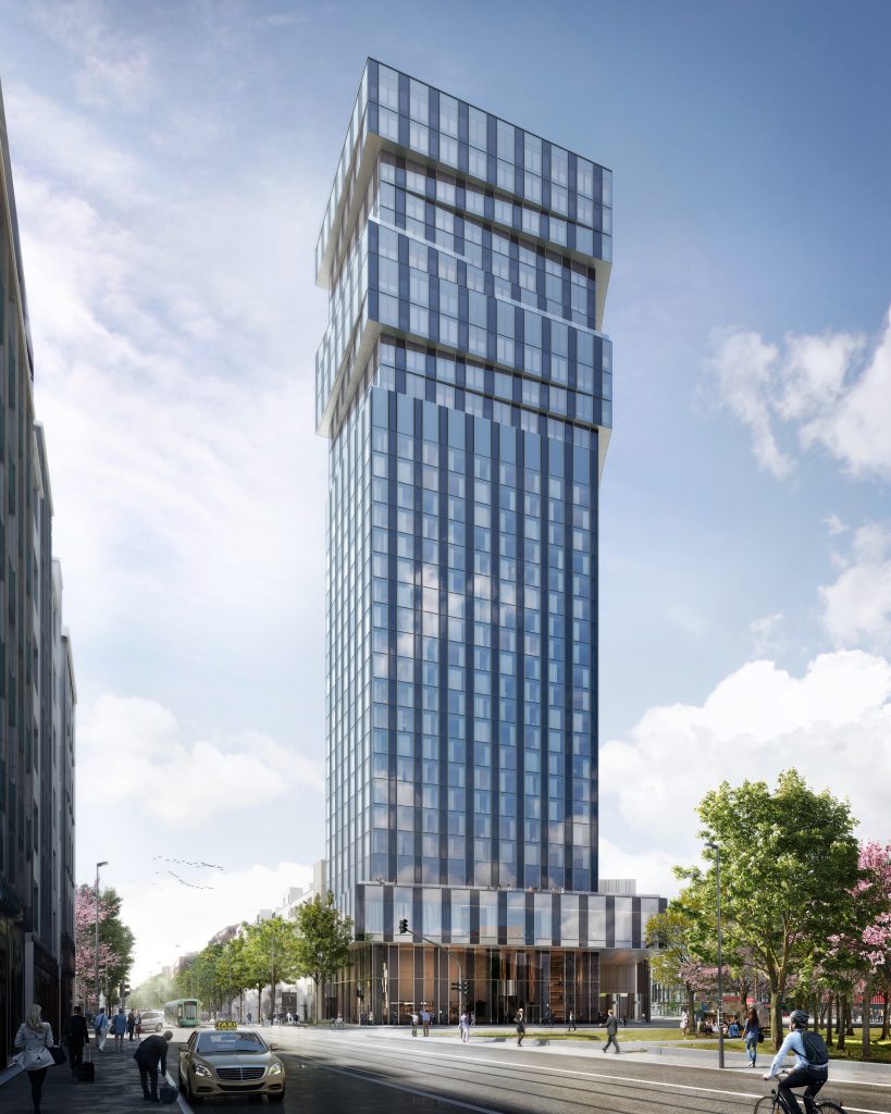 Perfekt erreichbar zwischen CBD, Europa- und Bahnhofsviertel gelegen, vereint der von Hadi Teherani entworfene Tower auf 32 Etagen erstklassige Büroflächen mit einem stilvollen 4-Sterne-Plus-Hotel.