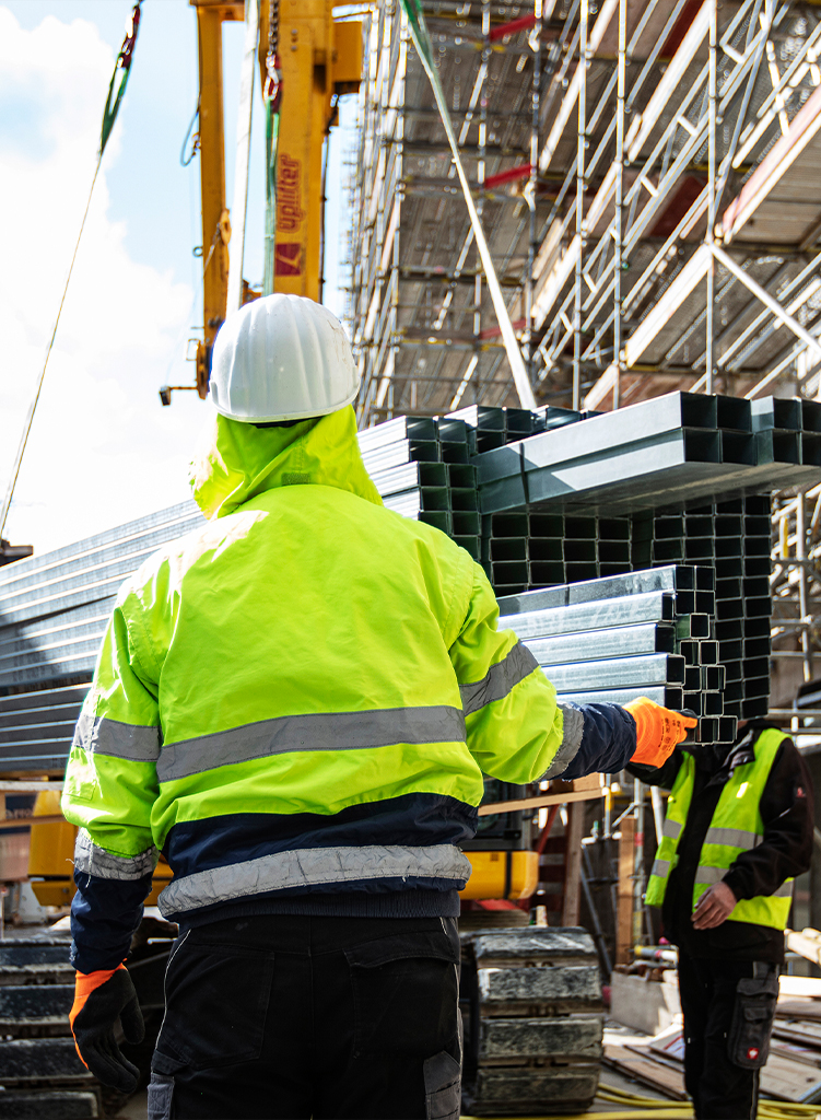 Unser Logistik-Team pflegt durch tägliche Baustellenbegehungen einen engen Kontakt zu allen Gewerken, prüft Sauberkeit und Ordnung und sorgt so gleichzeitig für die notwendige Arbeitssicherheit auf dem Baufeld.